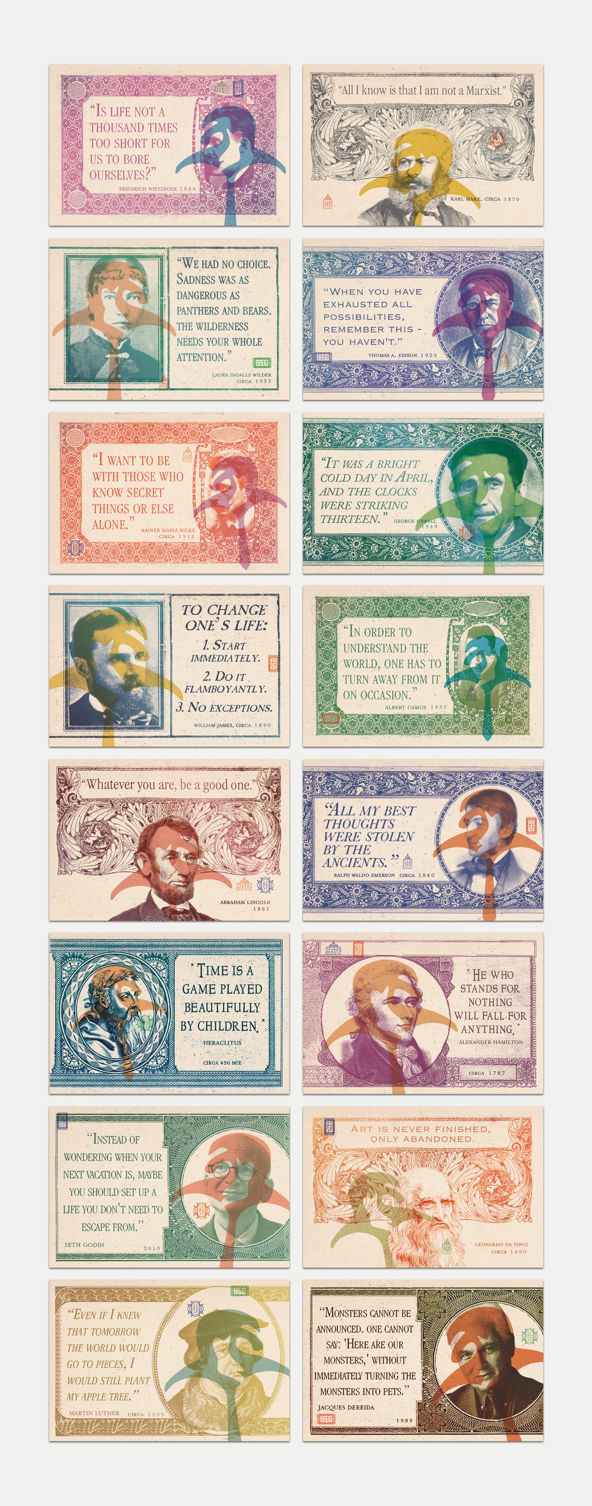 Client: Turncoat Wine Company Creative Direction: Josh McFadden Designed at Proof Wine Collective with Jesse Mireles. Promotional business and trading cards for the Studio of Turncoat featuring famous turncoat thinkers throughout history.